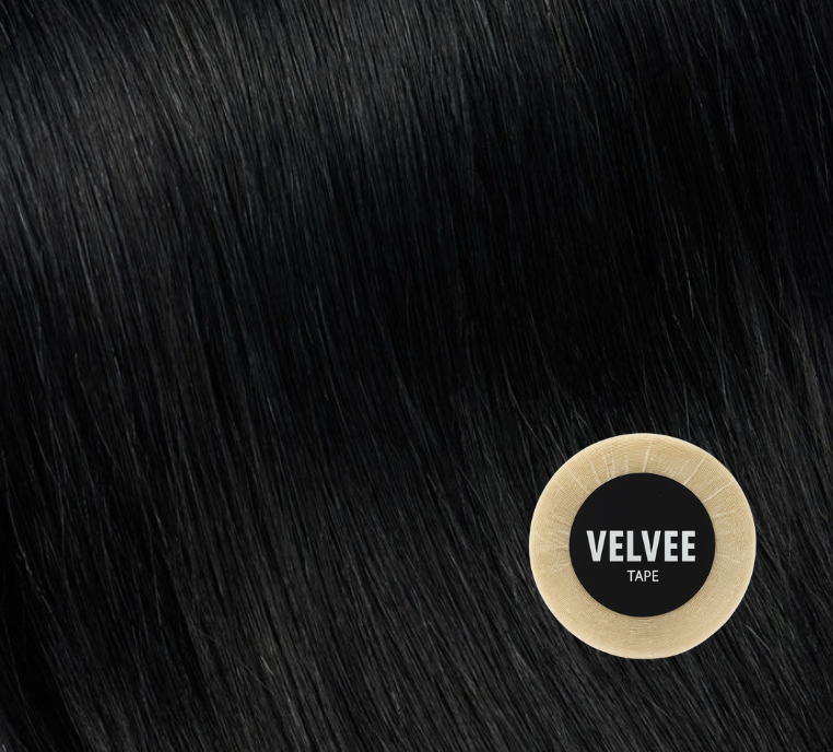 Just section your hair, tape the VELVEEs slightly under the part and lay hair directly over the tape, NO SANDWICH REQUIRED! VELVEE Hair color Darkest Brown was used in this video, dyed with Loreal Superior Preference 3c Cook Darkest Brown.