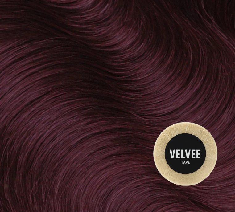 Just section your hair, tape the VELVEEs slightly under the part and lay hair directly over the tape, NO SANDWICH REQUIRED! VELVEE Hair color Darkest Brown was used in this video, dyed with Loreal Superior Preference 3c Cook Darkest Brown.